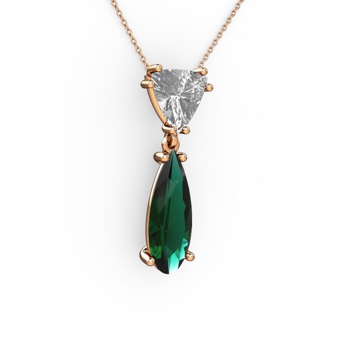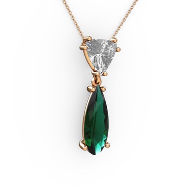 Swarovski ve yeşil kuvars 8 ayar rose altın kolye (40 cm rose altın rolo zincir)