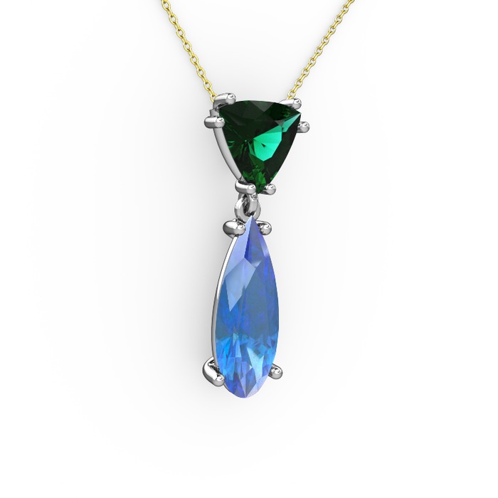 Yeşil kuvars ve akuamarin 14 ayar beyaz altın kolye (40 cm altın rolo zincir)