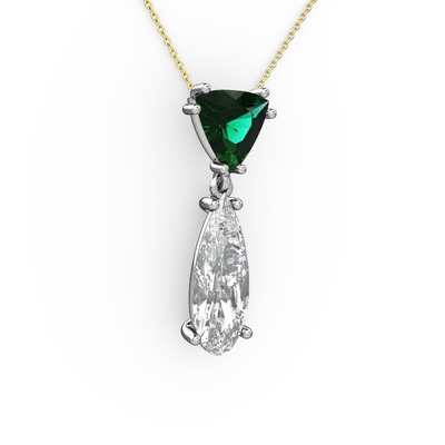 Yeşil kuvars ve beyaz zirkon 18 ayar beyaz altın kolye (40 cm altın rolo zincir)