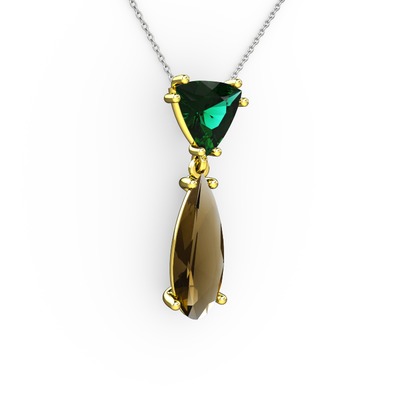 Yeşil kuvars ve dumanlı kuvars 18 ayar altın kolye (40 cm beyaz altın rolo zincir)