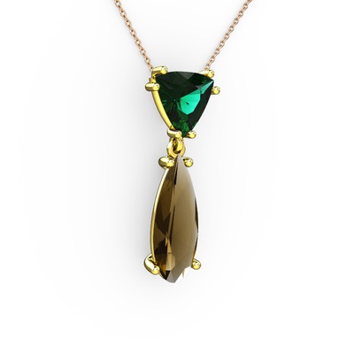 Yeşil kuvars ve dumanlı kuvars 18 ayar altın kolye (40 cm gümüş rolo zincir)