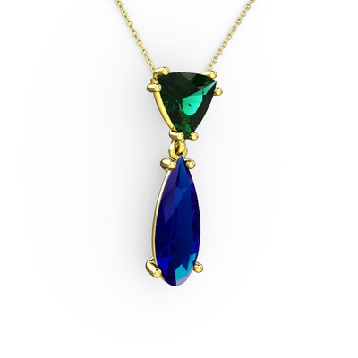 Yeşil kuvars ve lab safir 18 ayar altın kolye (40 cm altın rolo zincir)