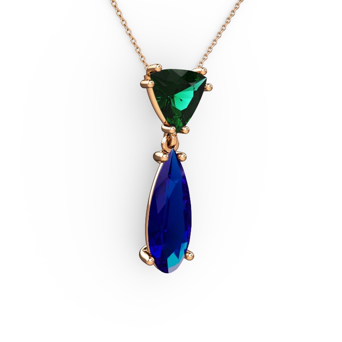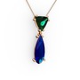 Yeşil kuvars ve lab safir 925 ayar rose altın kaplama gümüş kolye (40 cm rose altın rolo zincir)