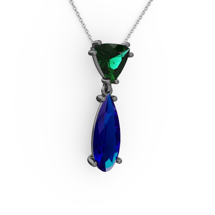 Yeşil kuvars ve lab safir 925 ayar siyah rodyum kaplama gümüş kolye (40 cm gümüş rolo zincir)