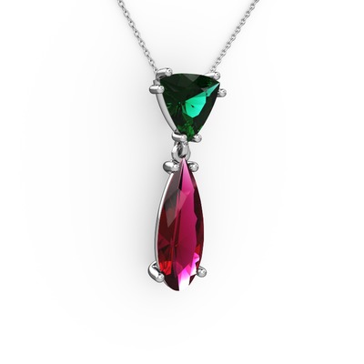 Yeşil kuvars ve rodolit garnet 14 ayar beyaz altın kolye (40 cm beyaz altın rolo zincir)