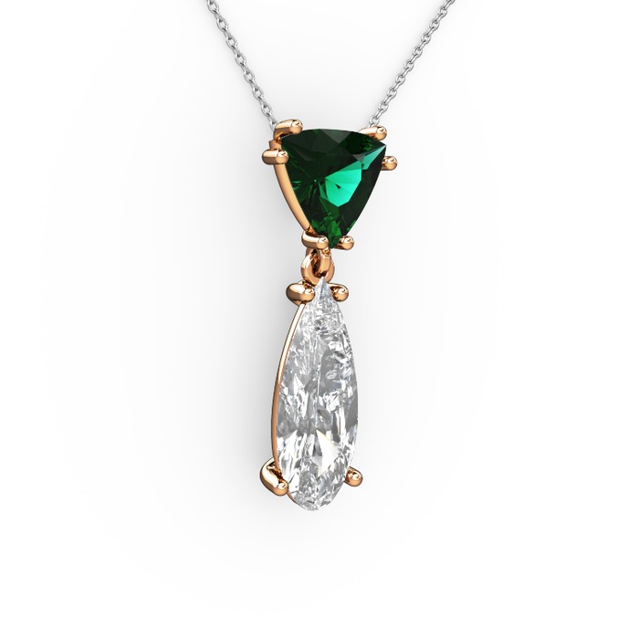Yeşil kuvars ve swarovski 925 ayar rose altın kaplama gümüş kolye (40 cm beyaz altın rolo zincir)