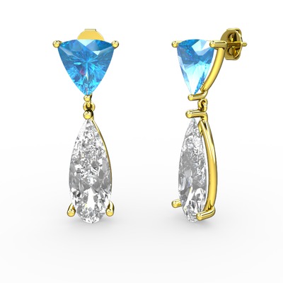 Akuamarin ve beyaz zirkon 18 ayar altın küpe