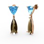 Akuamarin ve dumanlı kuvars 14 ayar rose altın küpe