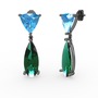 Akuamarin ve yeşil kuvars 925 ayar siyah rodyum kaplama gümüş küpe