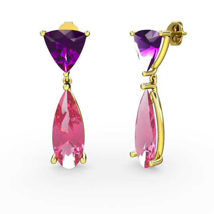 Ametist ve pembe kuvars 14 ayar altın küpe