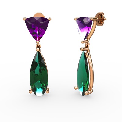 Ametist ve yeşil kuvars 14 ayar rose altın küpe