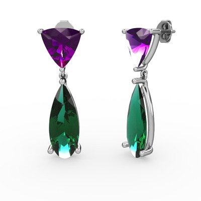 Ametist ve yeşil kuvars 925 ayar gümüş küpe