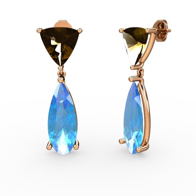 Dumanlı kuvars ve akuamarin 18 ayar rose altın küpe