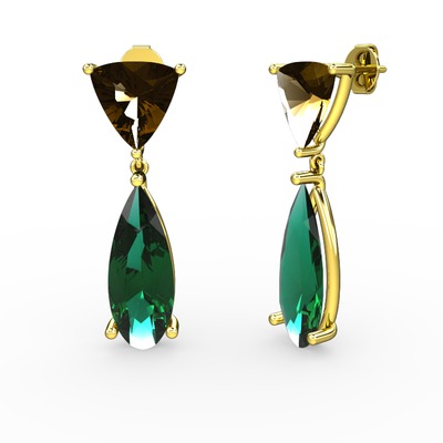 Dumanlı kuvars ve yeşil kuvars 18 ayar altın küpe