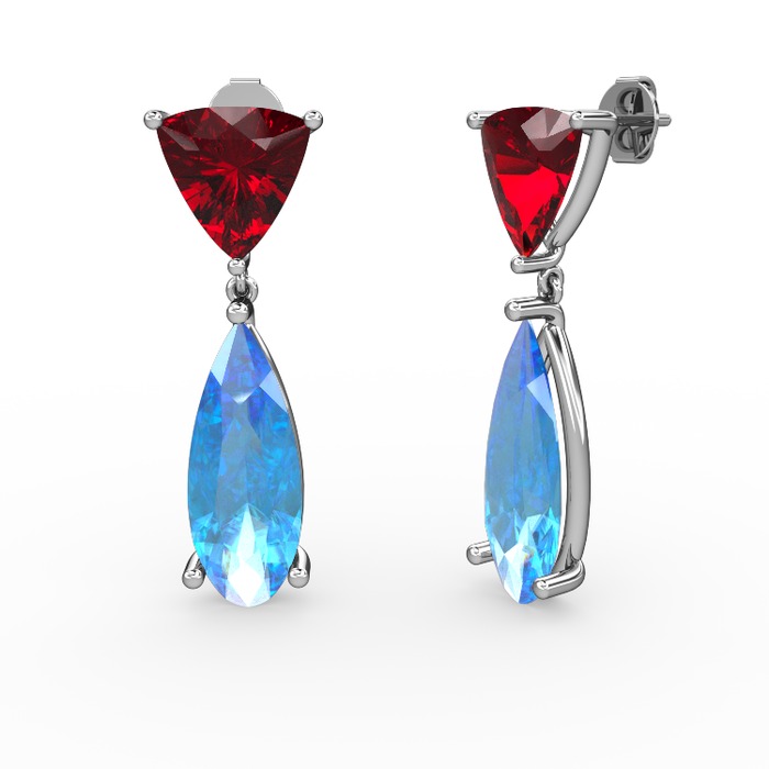 Garnet ve akuamarin 14 ayar beyaz altın küpe