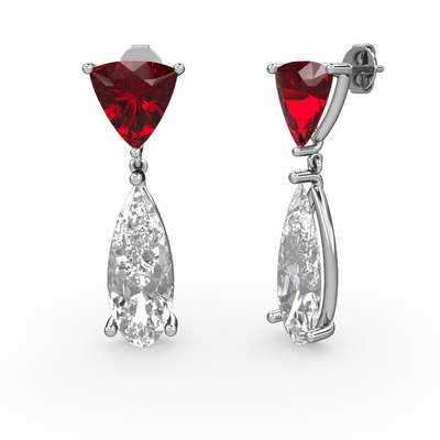 Garnet ve beyaz zirkon 14 ayar beyaz altın küpe