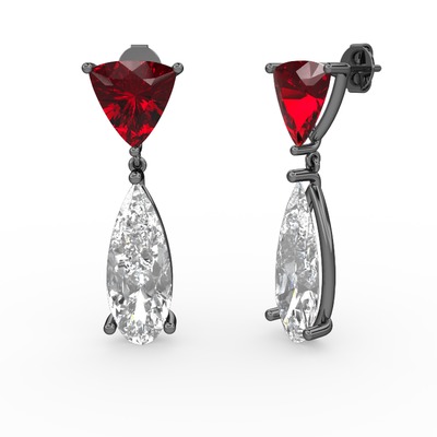 Garnet ve beyaz zirkon 925 ayar siyah rodyum kaplama gümüş küpe