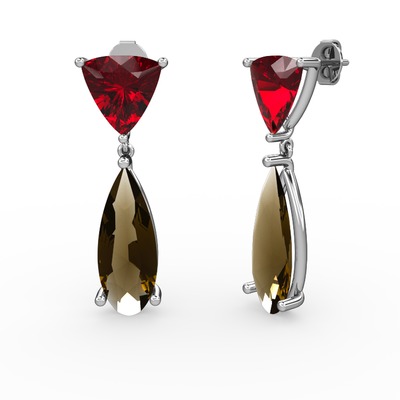 Garnet ve dumanlı kuvars 925 ayar gümüş küpe