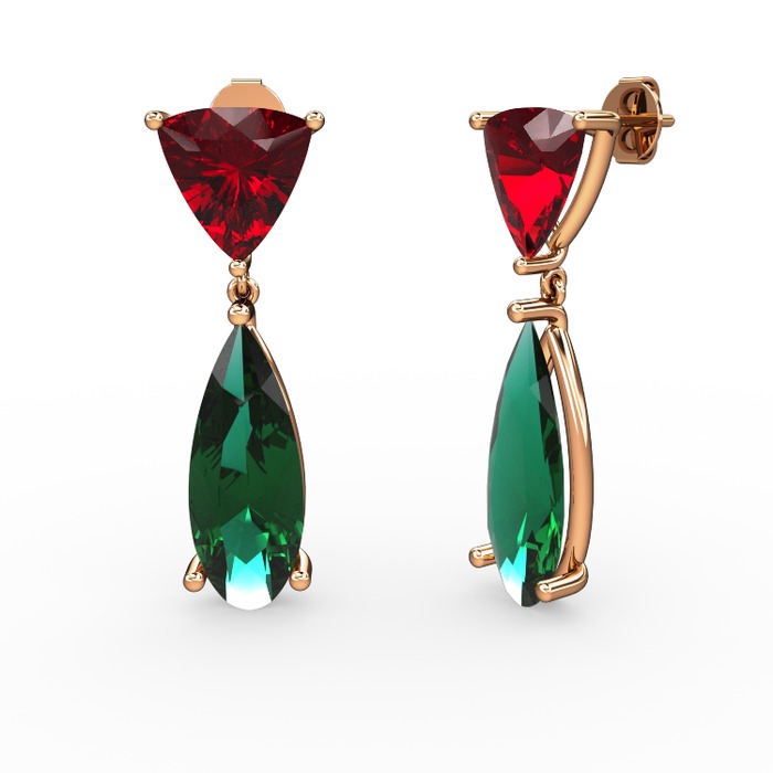 Garnet ve yeşil kuvars 8 ayar rose altın küpe