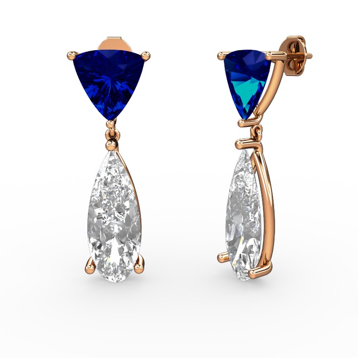 Lab safir ve beyaz zirkon 8 ayar rose altın küpe