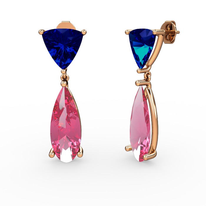Lab safir ve pembe kuvars 8 ayar rose altın küpe