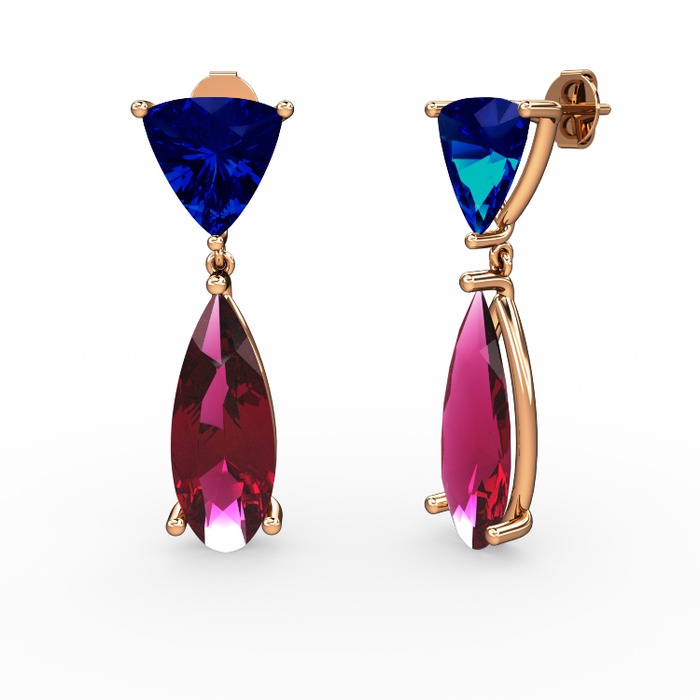 Lab safir ve rodolit garnet 8 ayar rose altın küpe