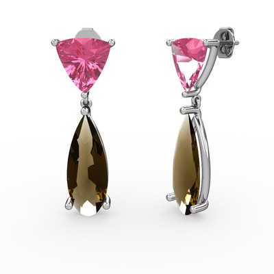 Pembe kuvars ve dumanlı kuvars 18 ayar beyaz altın küpe