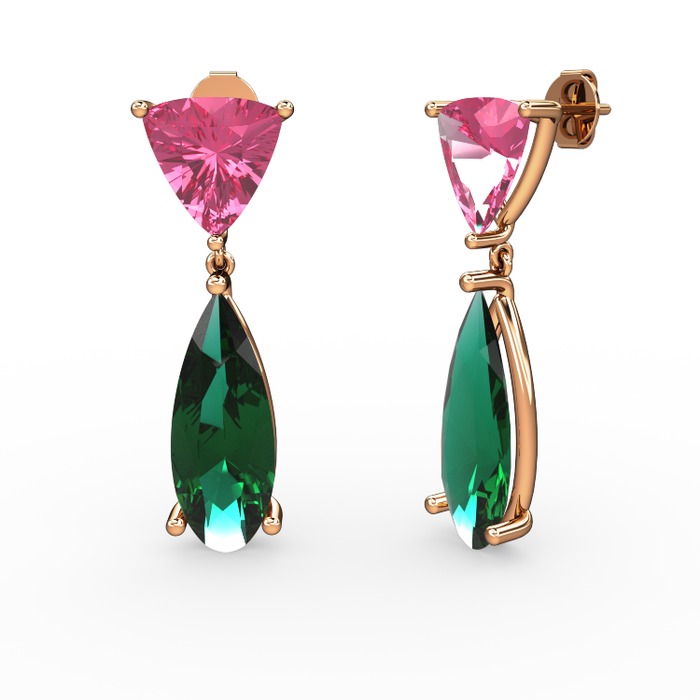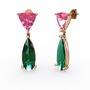 Pembe kuvars ve yeşil kuvars 14 ayar rose altın küpe