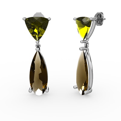 Peridot ve dumanlı kuvars 18 ayar beyaz altın küpe
