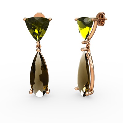 Peridot ve dumanlı kuvars 8 ayar rose altın küpe