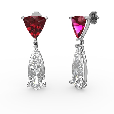 Rodolit garnet ve beyaz zirkon 8 ayar beyaz altın küpe