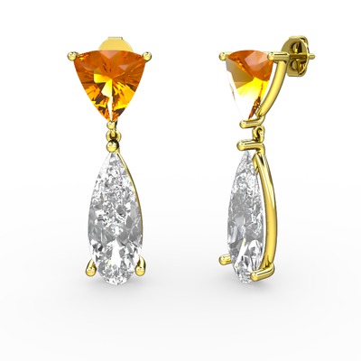 Sitrin ve beyaz zirkon 18 ayar altın küpe