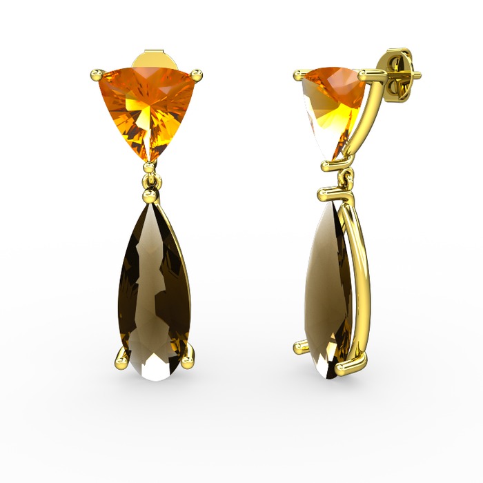 Sitrin ve dumanlı kuvars 18 ayar altın küpe