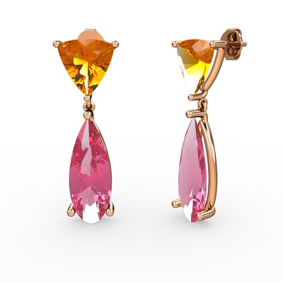 Sitrin ve pembe kuvars 925 ayar rose altın kaplama gümüş küpe