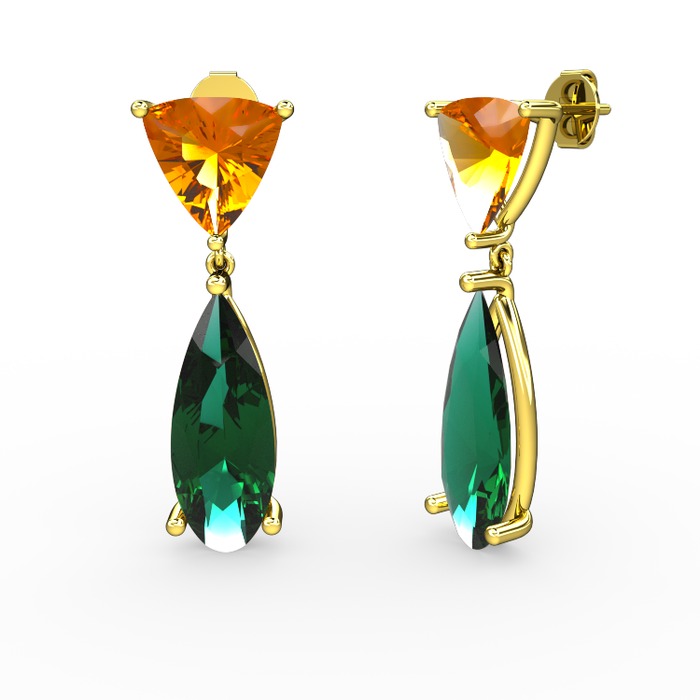 Sitrin ve yeşil kuvars 14 ayar altın küpe
