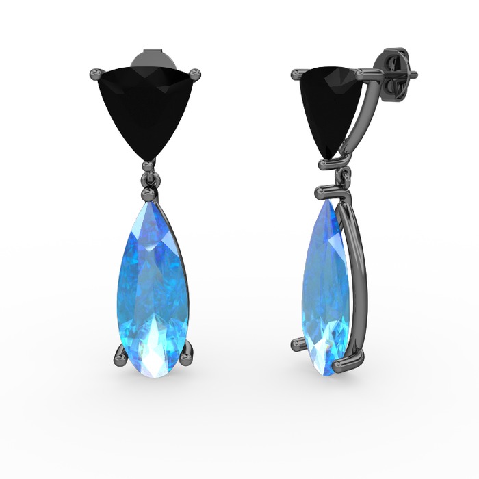 Siyah zirkon ve akuamarin 925 ayar siyah rodyum kaplama gümüş küpe