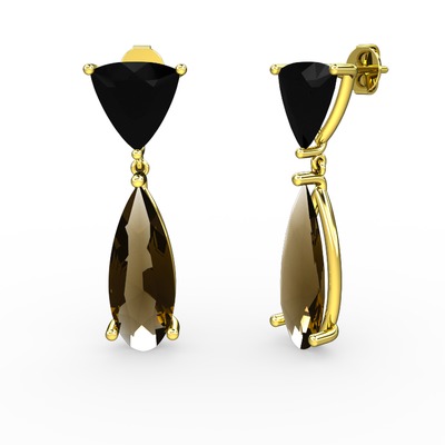 Siyah zirkon ve dumanlı kuvars 8 ayar altın küpe
