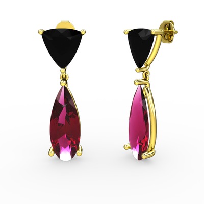 Siyah zirkon ve rodolit garnet 14 ayar altın küpe