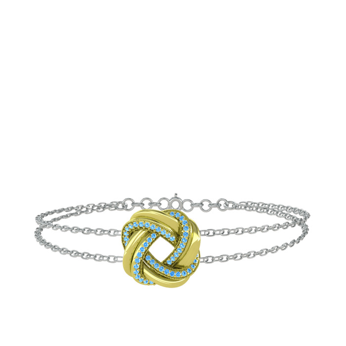 Akuamarin 925 ayar altın kaplama gümüş bilezik (40 cm beyaz altın rolo zincir)