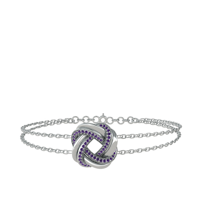 Ametist 14 ayar beyaz altın bilezik (40 cm beyaz altın rolo zincir)