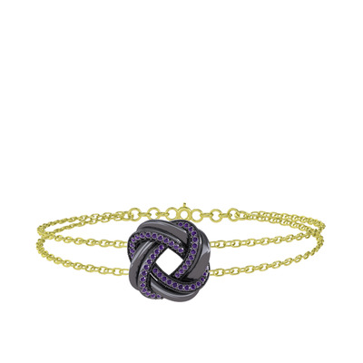Ametist 925 ayar siyah rodyum kaplama gümüş bilezik (40 cm altın rolo zincir)