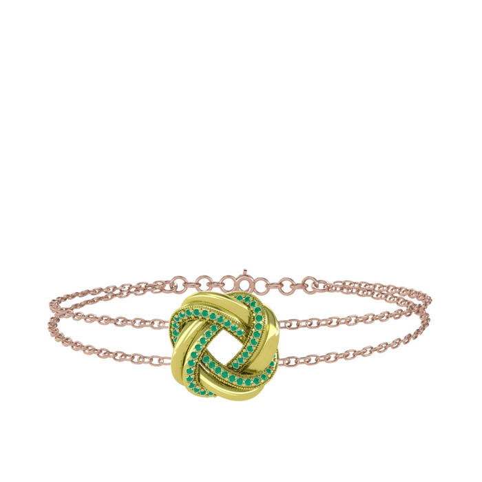 Kök zümrüt 14 ayar altın bilezik (40 cm rose altın rolo zincir)