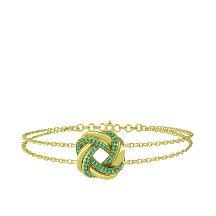 Kök zümrüt 925 ayar altın kaplama gümüş bilezik (40 cm altın rolo zincir)