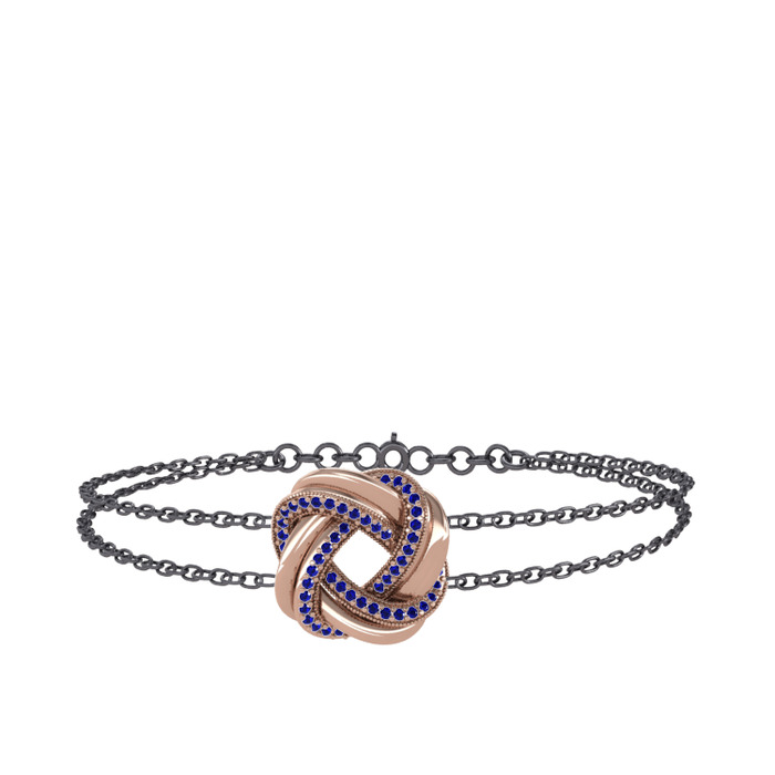 Lab safir 8 ayar rose altın bilezik (40 cm gümüş rolo zincir)