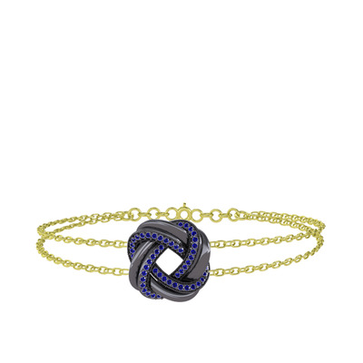 Lab safir 925 ayar siyah rodyum kaplama gümüş bilezik (40 cm altın rolo zincir)