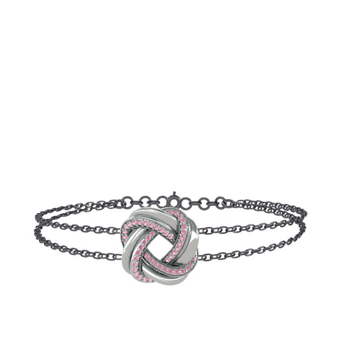 Pembe kuvars 18 ayar beyaz altın bilezik (40 cm gümüş rolo zincir)