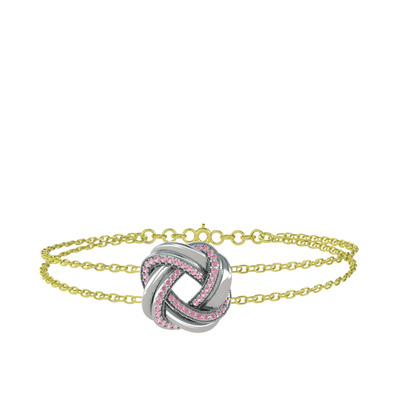 Pembe kuvars 8 ayar beyaz altın bilezik (40 cm altın rolo zincir)