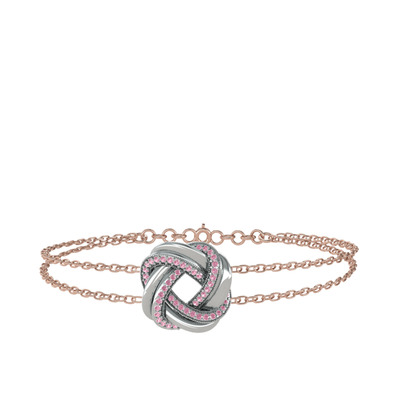 Pembe kuvars 925 ayar gümüş bilezik (40 cm rose altın rolo zincir)