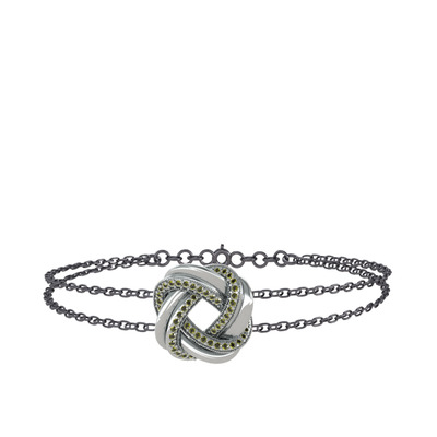 Peridot 18 ayar beyaz altın bilezik (40 cm gümüş rolo zincir)