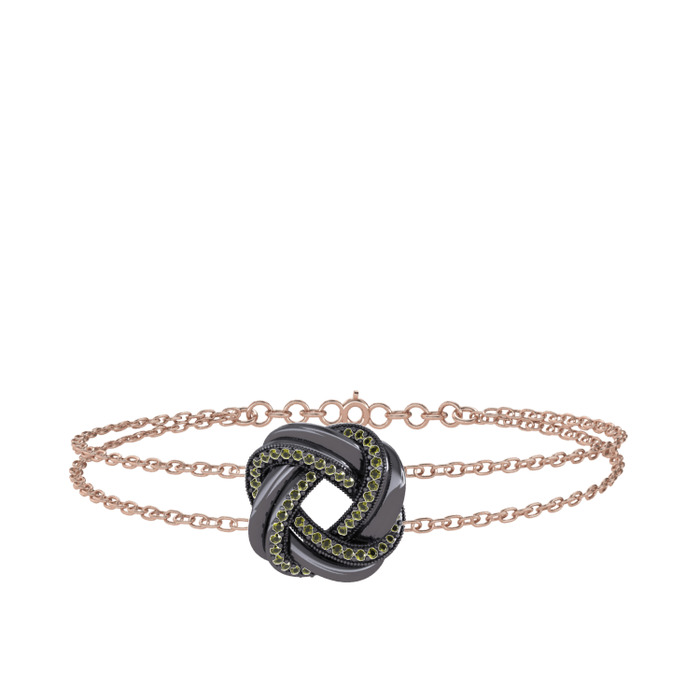 Peridot 925 ayar siyah rodyum kaplama gümüş bilezik (40 cm rose altın rolo zincir)
